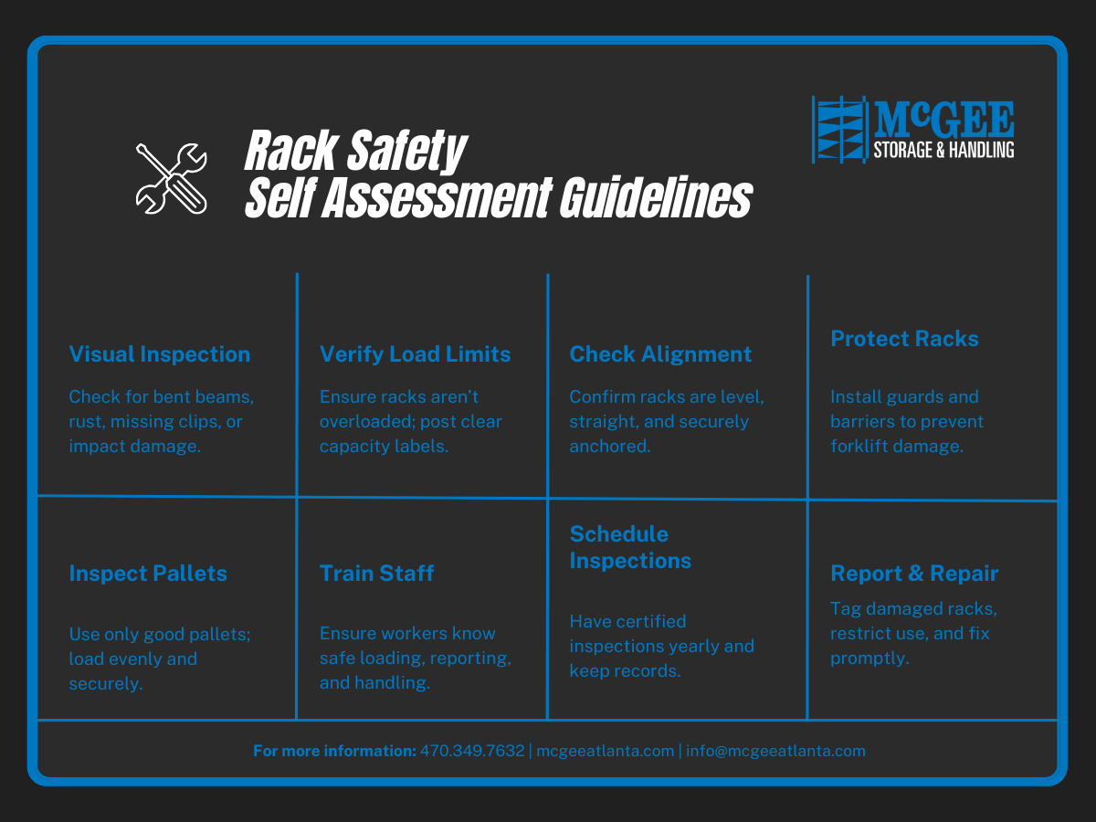 See our Rack Safety Self-Assessment Guidelines below to evaluate your racking's current condition: