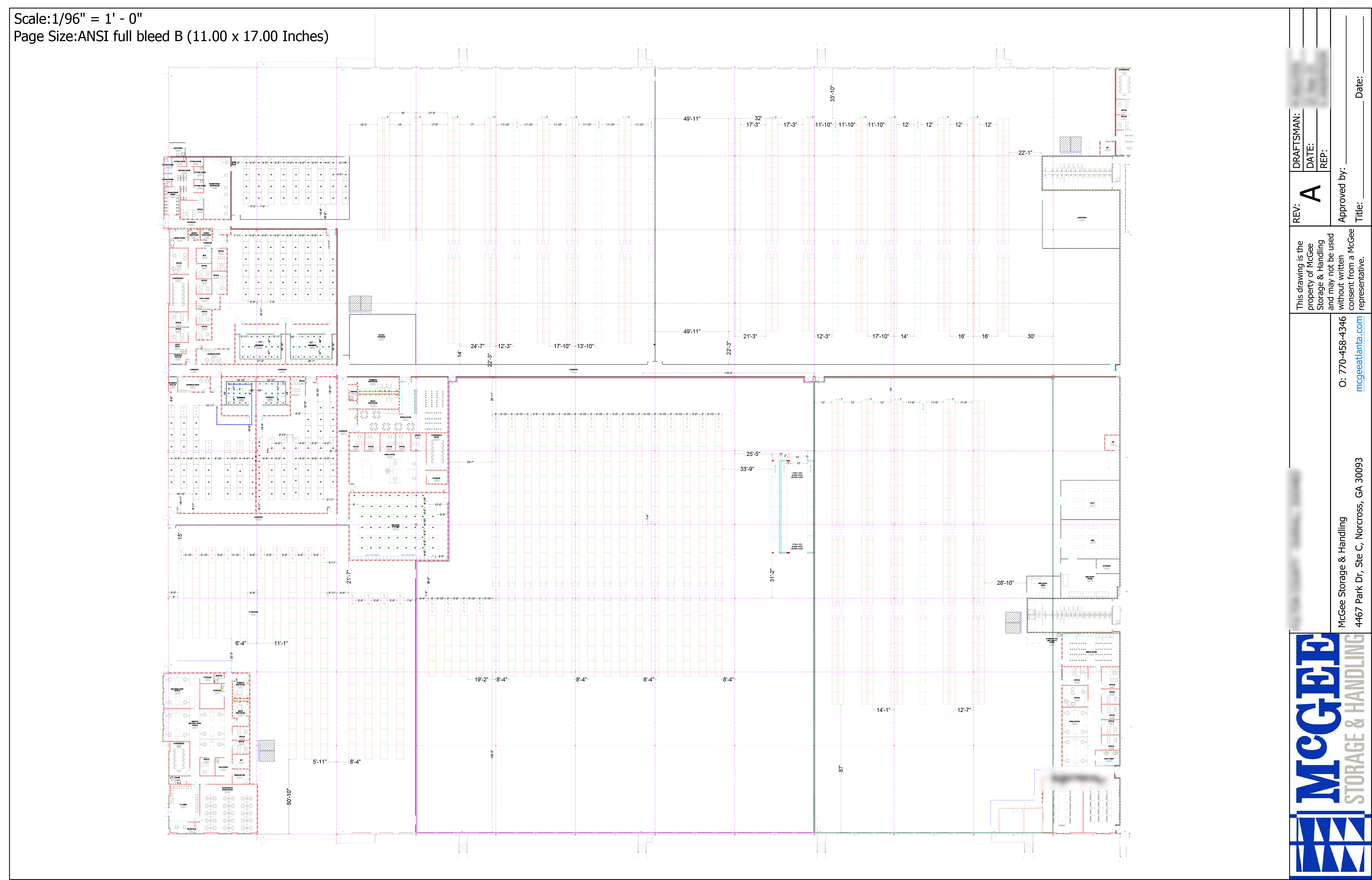 Selective pallet racking was chosen for several of the areas. The varied product size and desire to access all pallets without shuffling others made the solution more about vertical beam spacing than design. Several back-and-forth renditions were made, and the final drawings were approved. Interlake Mecalux and Nashville Wire were the manufacturers of choice to supply materials.